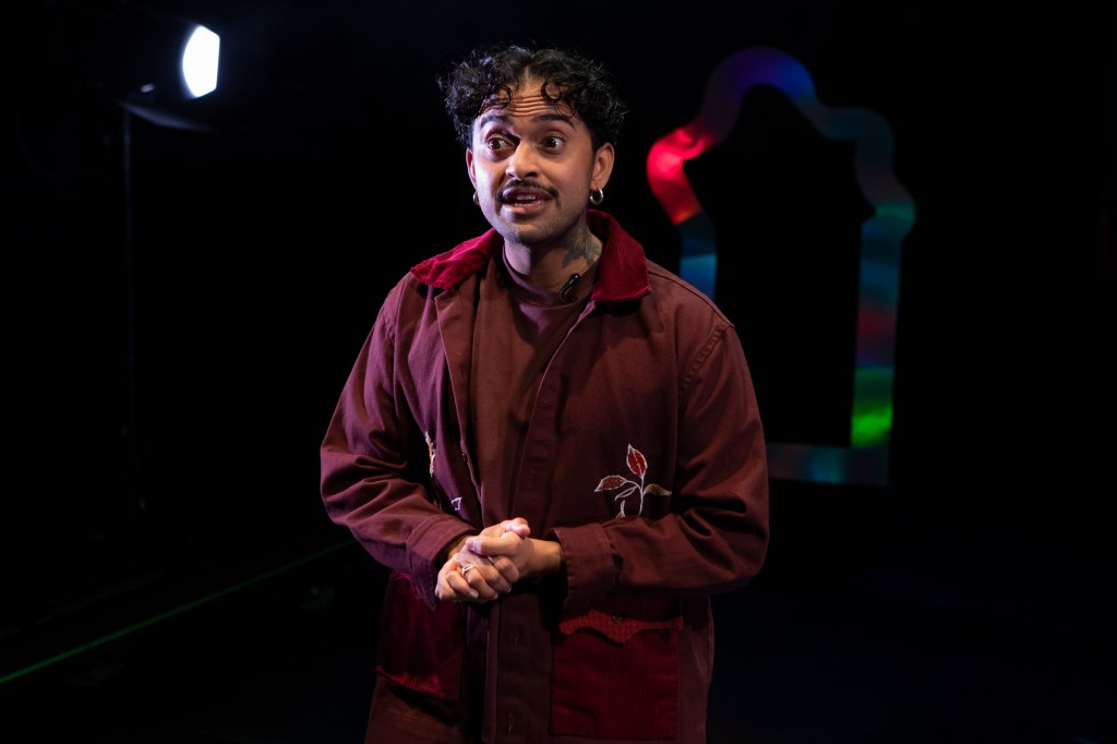 By using the fictional platform of ‘Notflix,’ Shankar’s story is divided into several chapters, which characterise major life moments and geographical movements. The use of projections, green screens and Bollywood-inspired aesthetics allow for some levity in amongst the deep subject matter, but also help to illustrate the more emotionally demanding aspects of Shankar’s life. This, plus the unscripted elements, make the piece feel especially immersive, and Shankar and Istha’s openness and vulnerability make it feel inviting – it’s almost like a shared experience, not your run of the mill show where you might expect to just ‘sit down and watch.’ The audience are engaged with by both performers from the off, and are welcomed into their world and their past, which is used to ask pertinent questions about the present.